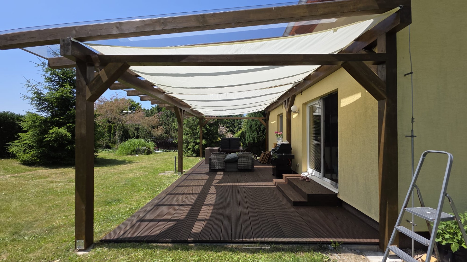 Jsme nadšení tesaři se specializací na výrobu a montáž pergol, teras, zahradních domků, saun a střech. K vašim projektům přistupujeme se stejnou péčí, jako bychom je stavěli pro sebe.